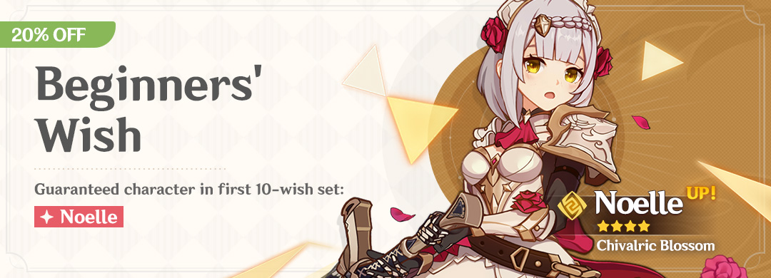 Noelle only drops from a wish banner, but here's the good news: she is a guaranteed drop. This comes as part of the in-game tutorials - Noelle drops on your first 10-wish pull from the Beginner's Banner that appears as part of the in-game tutorial that introduces wishes.