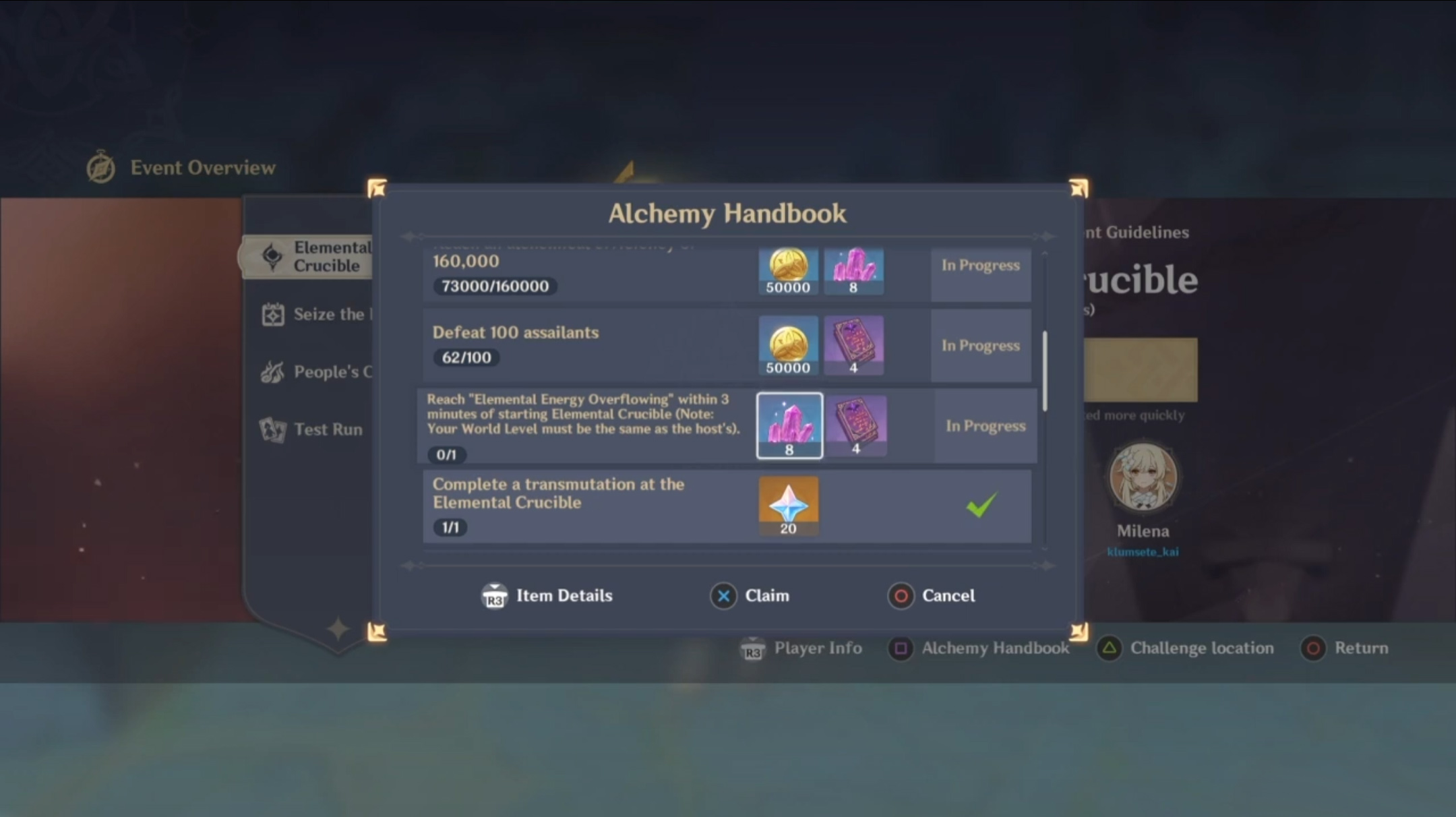 One of the most impressive rewards available from the Elemental Crucible event comes from completing one specific challenge in your Alchemy Handbook: to reach Elemental Energy Overflowing. The official mission is simple: Reach "Elemental Energy Overflowing" within 3 minutes of starting Elemental Crucible.