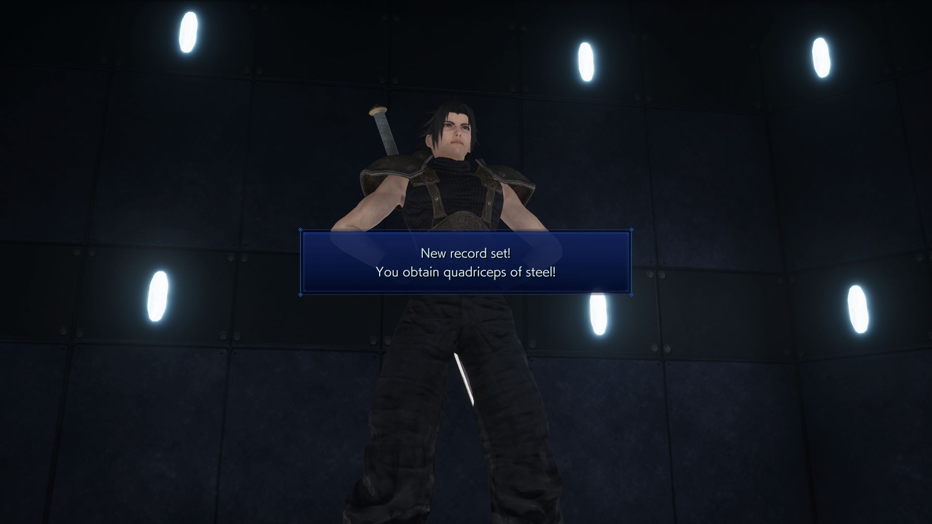 In Crisis Core Reunion, you’ll also get a Trophy or Achievement for finishing all four levels of the Squatting minigame.