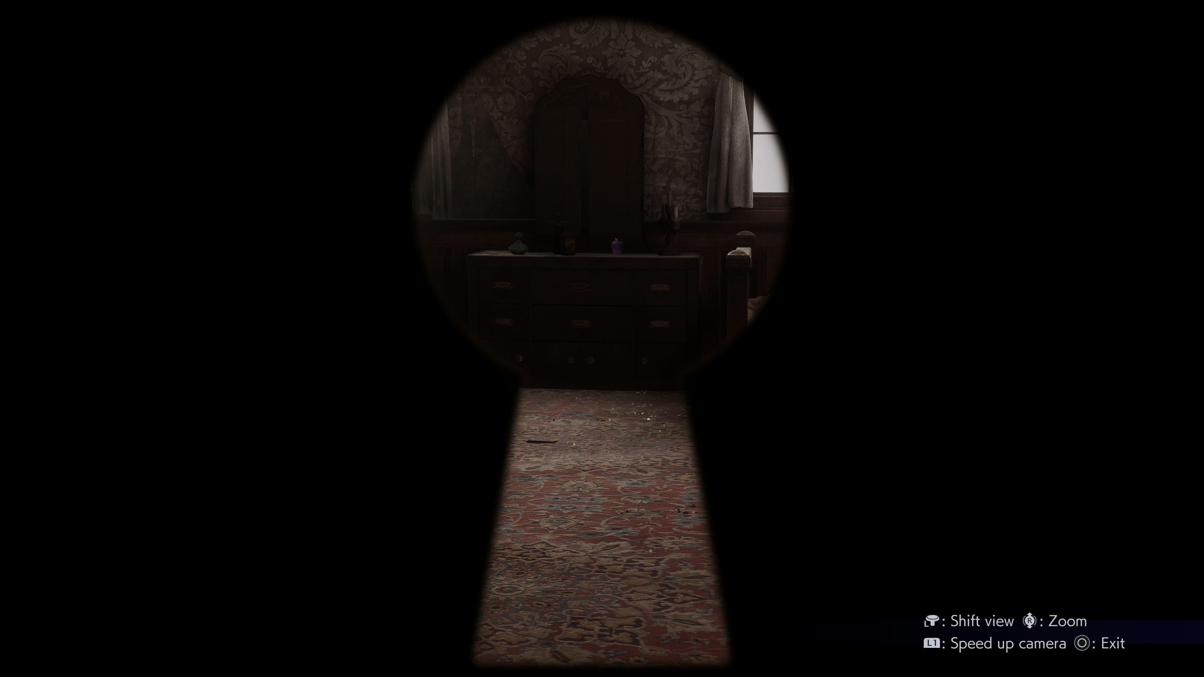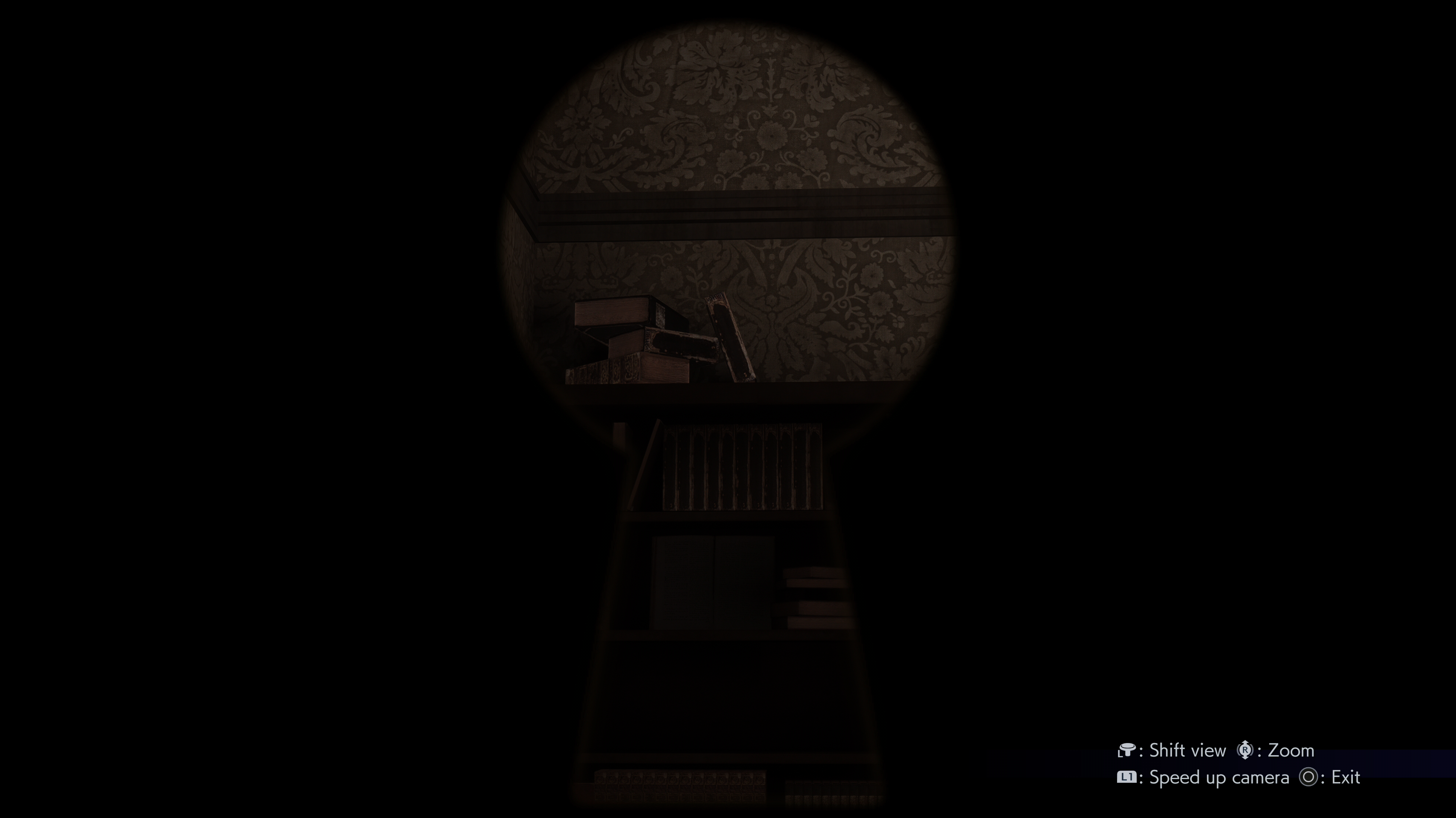 Head to the west/left side of the upper floor, right by the room with the safe. There’s another locked door with a keyhole you can look through here.