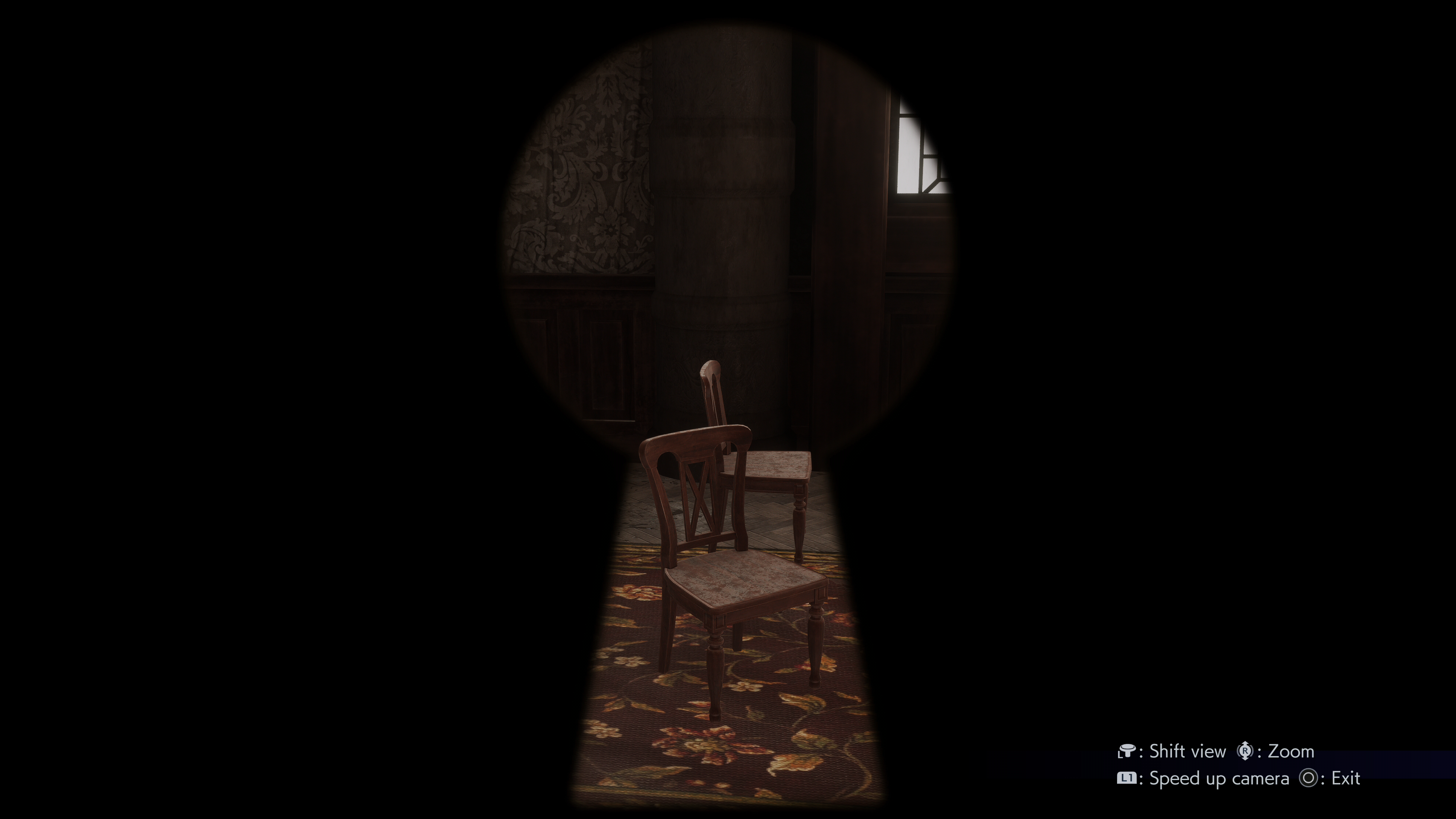 It’s the same deal here: peek through the keyhole. This time you’re looking for chairs. Count the number of chairs you find within the room to get the final safe code digit. Keep in mind that some chairs might be only partially visible from your keyhole view perspective.