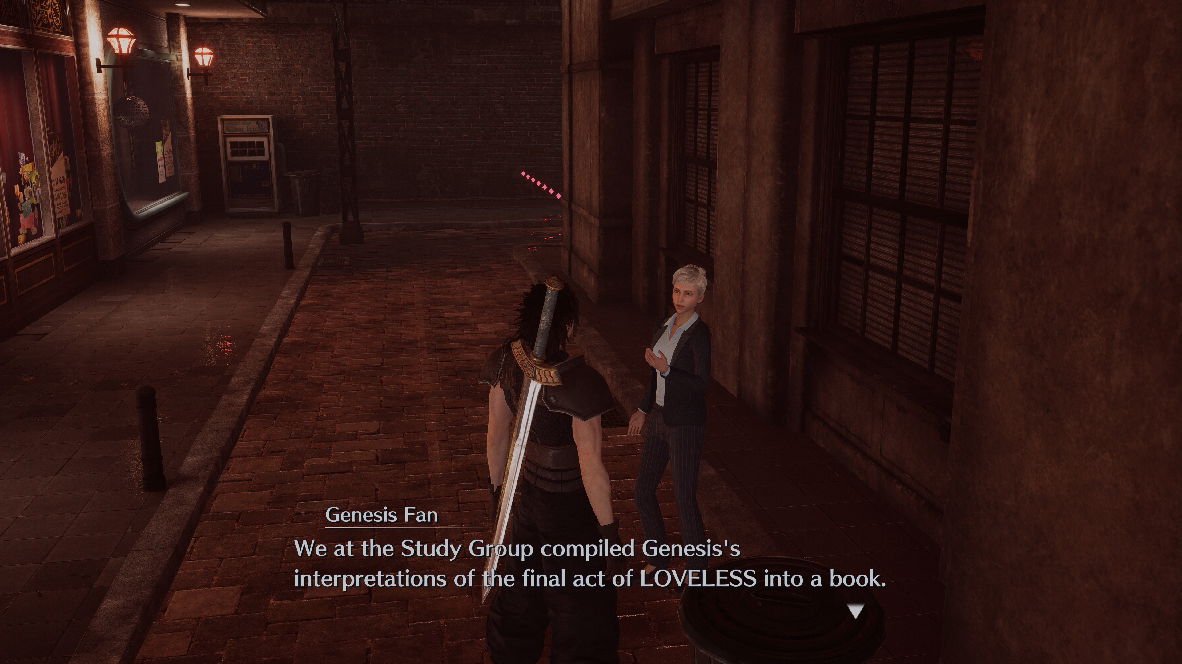 - To join the Loveless Study Group club, head to Loveless Avenue in Sector 8, and chat to the lady NPC down an alleyway to the right of the Loveless Theatre.