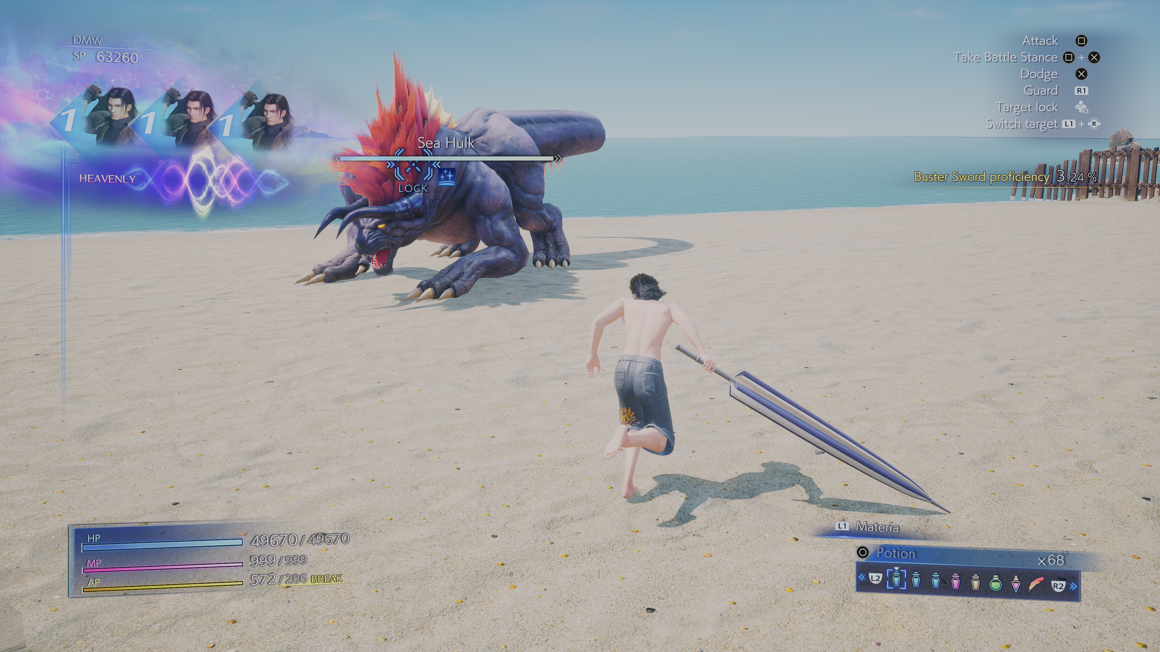 - Make use of that Buster Sword. In Crisis Core Reunion only, once Zack gets the Buster Sword you unlock 'Buster Sword Proficiency', including a Battle Stance that lets Zack block incoming attacks and then counter-attack. This can be great against the Sea Hulk.