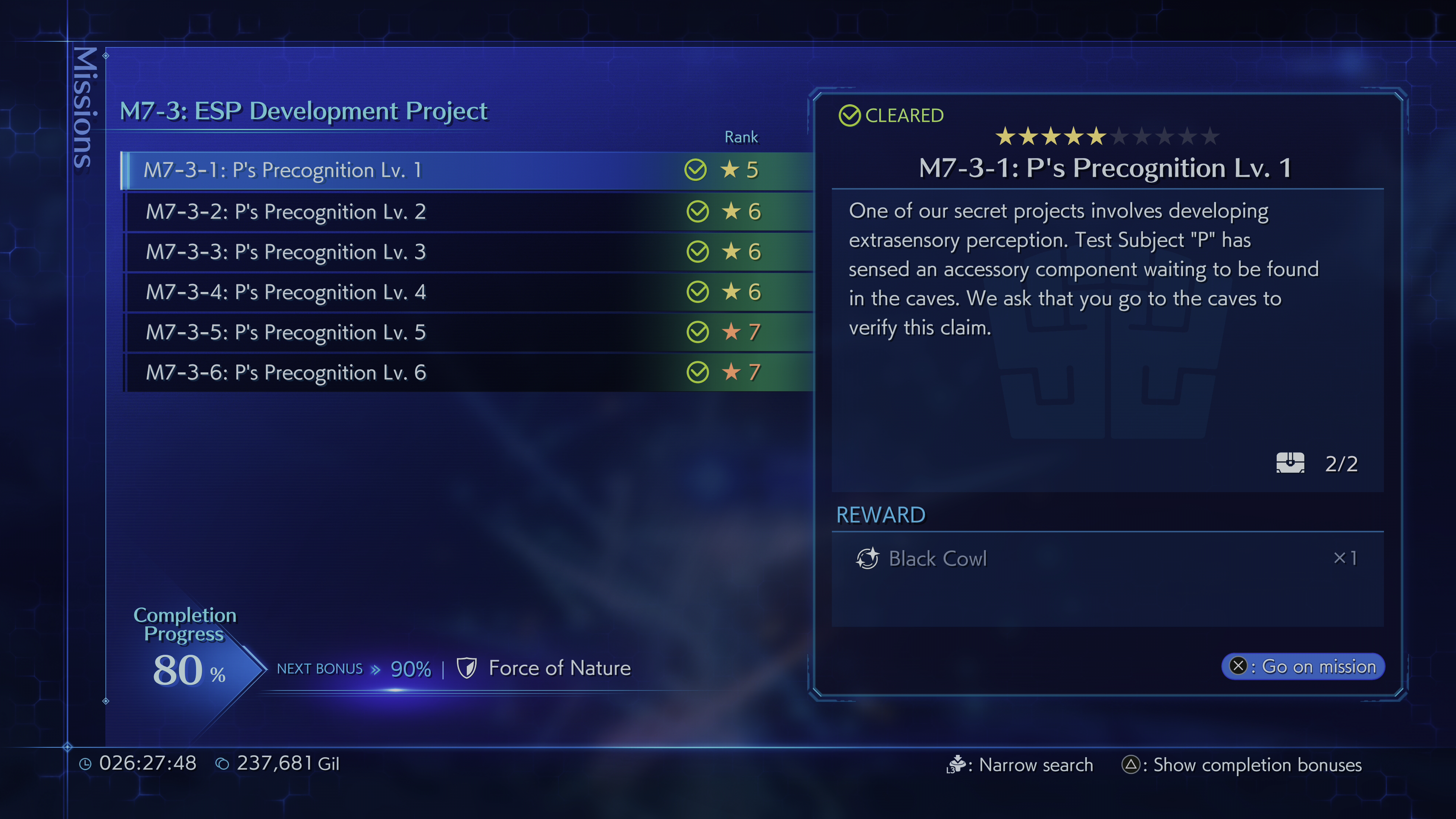 - A guaranteed mission reward for 7-3-1, “P’s Prerecognition Lv.1”.