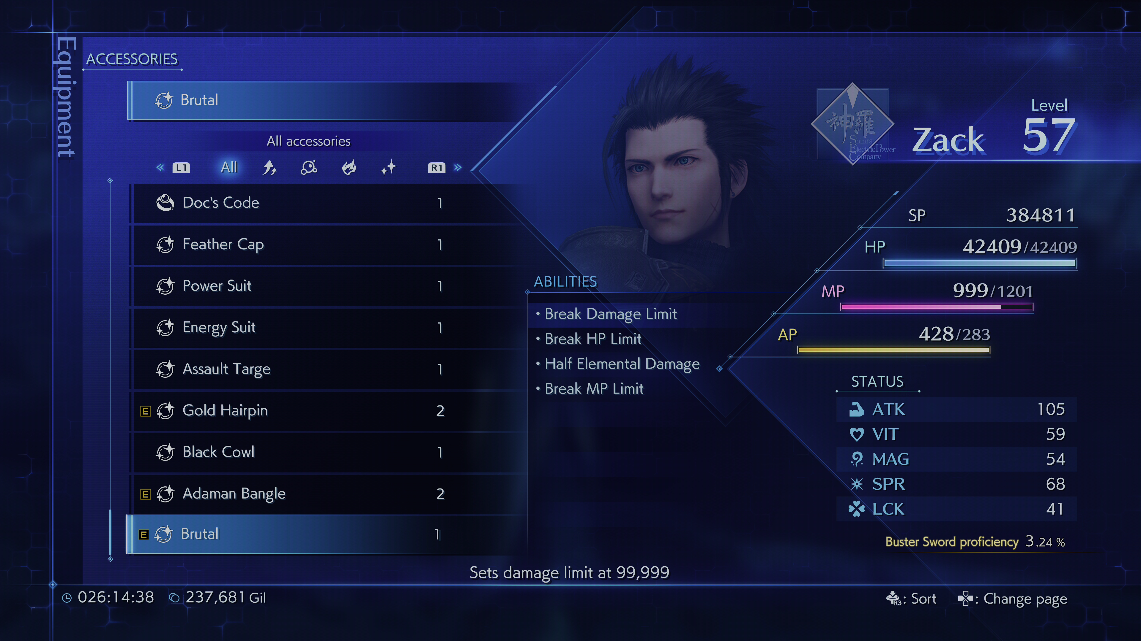 By breaking out of Zack’s HP Limit, you can make him more of a tank and able to survive hits more healthily. By breaking past his AP and MP limits, Zack can cast more magic and use more abilities without needing to use restorative items.