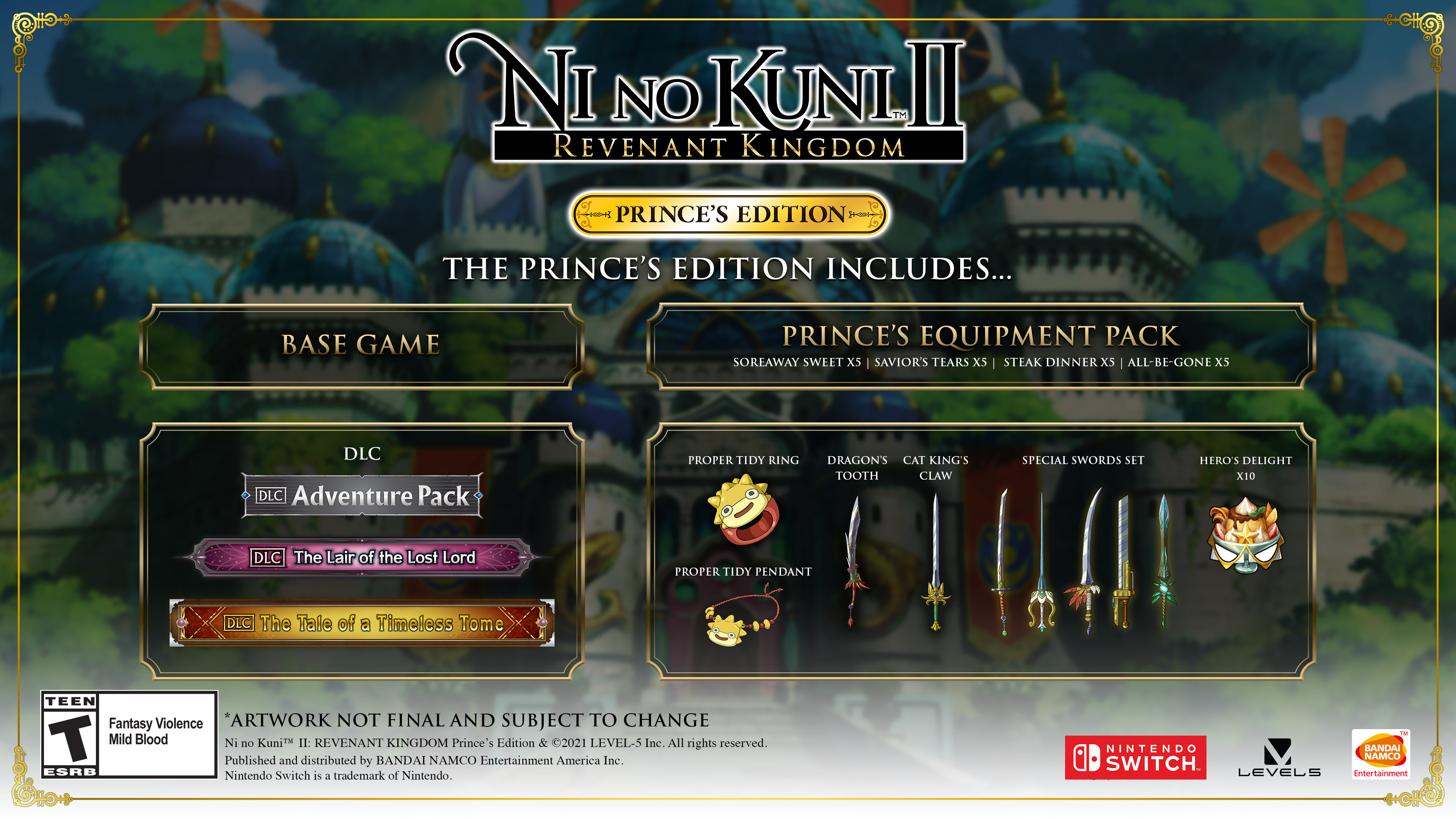 “The incredible artistry and deft emotional touches of the Ni no Kuni series have made it stand apart from other action RPGs, and we’re happy we can finally let Nintendo Switch fans experience the full breadth of Evan’s adventures on the go and at home,” said Ross Borden, VP of Publishing at BANDAI NAMCO Entertainment America Inc. “Ni no Kuni II: REVENANT KINGDOM - PRINCE’S EDITION tells the story of a kingdom in devastation, and of a group of friends ready to rebuild a kinder and more just world in its wake. We hope that new fans will embrace the game’s charming spirit of friendship and perseverance.”