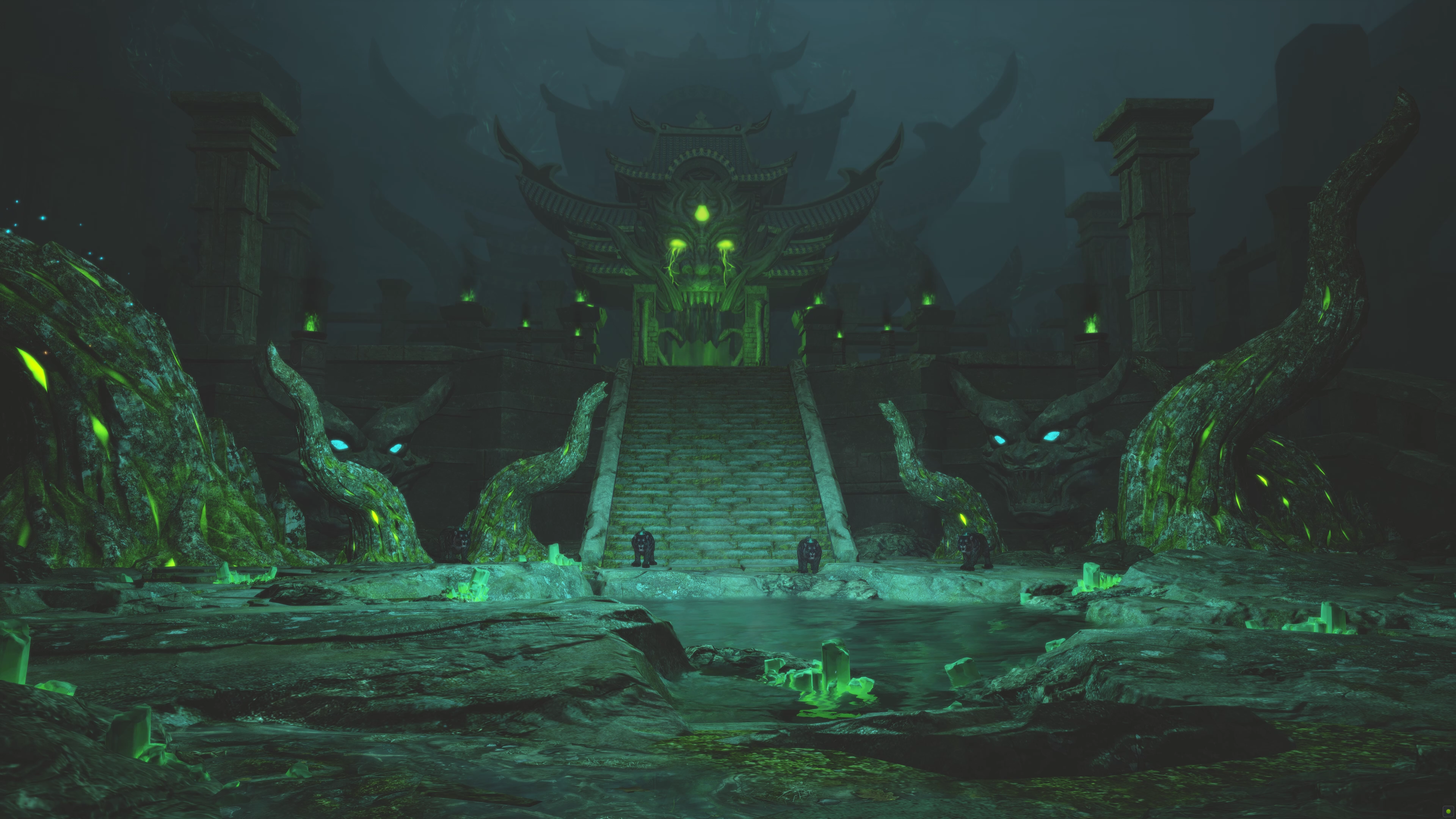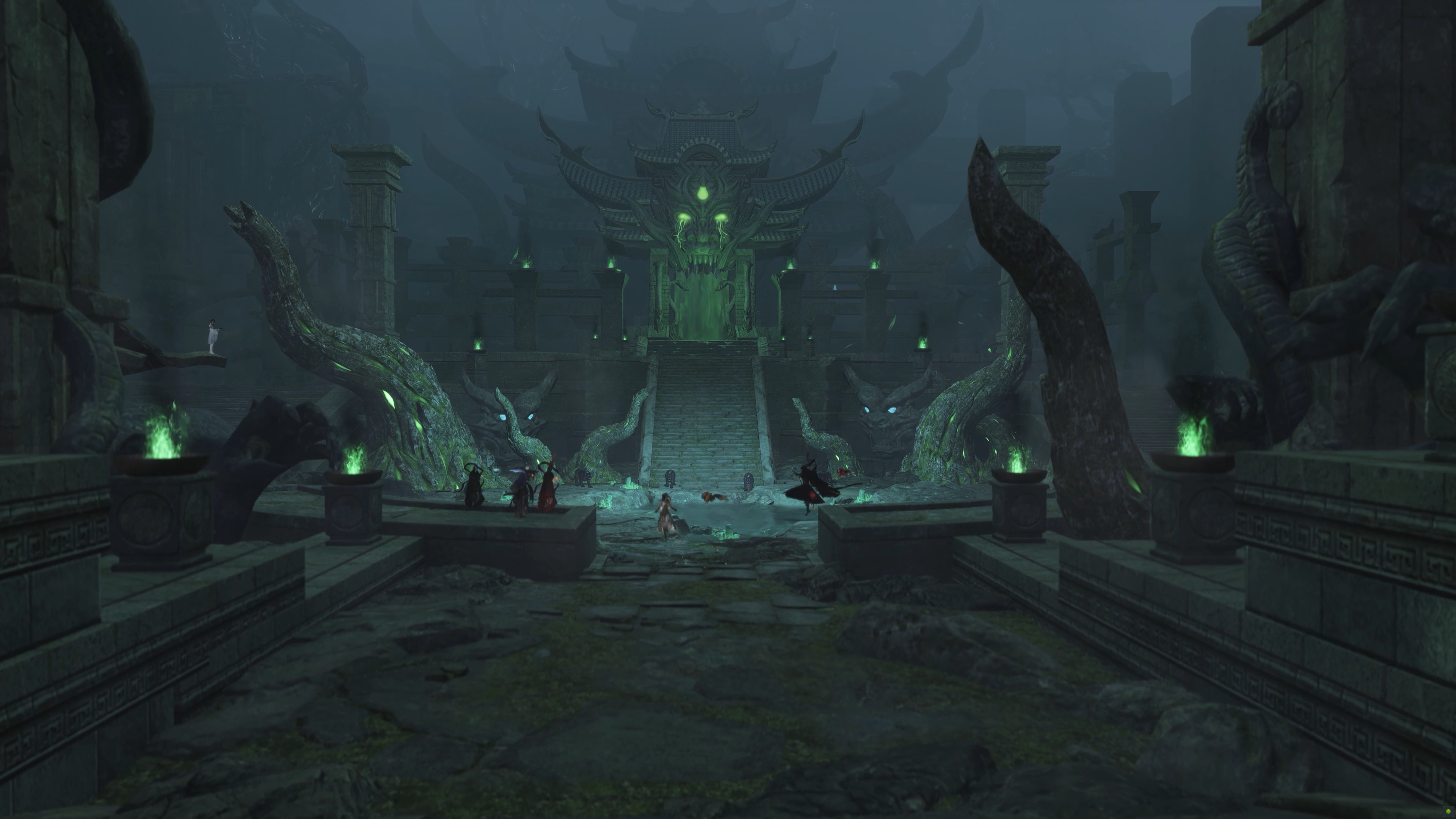 Any trace of the peaceful calm that once epitomised this temple has long since disappeared. Whoever trespasses on this once hallowed ground enters a hell beyond all hope. The source of this bane is the Stranger’s Sword, bathed in negative qi.