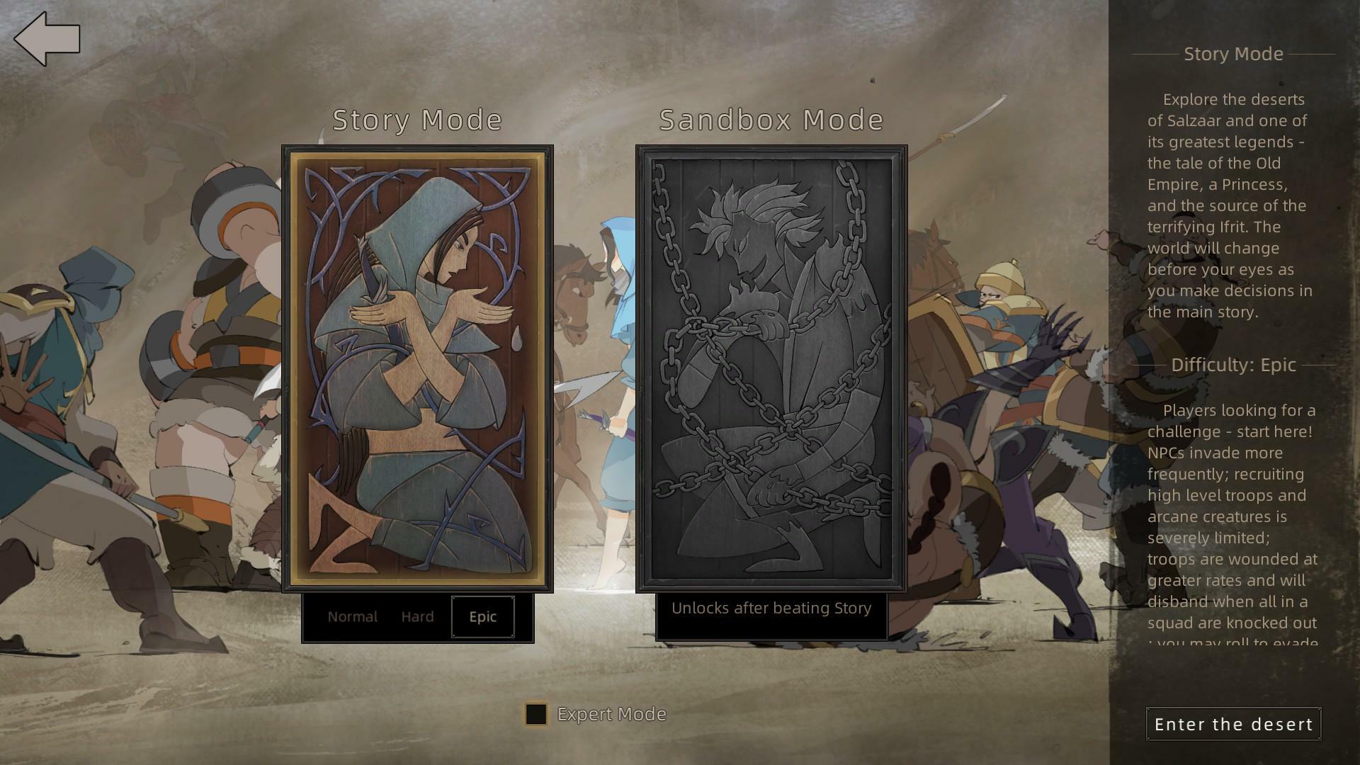 Epic: Recommended for hardcore travellers. AI factions will become extremely difficult to deal with, and they will recruit top-tier soldiers, deploy teams and launch attacks dynamically. You will face great difficulty in the journey.