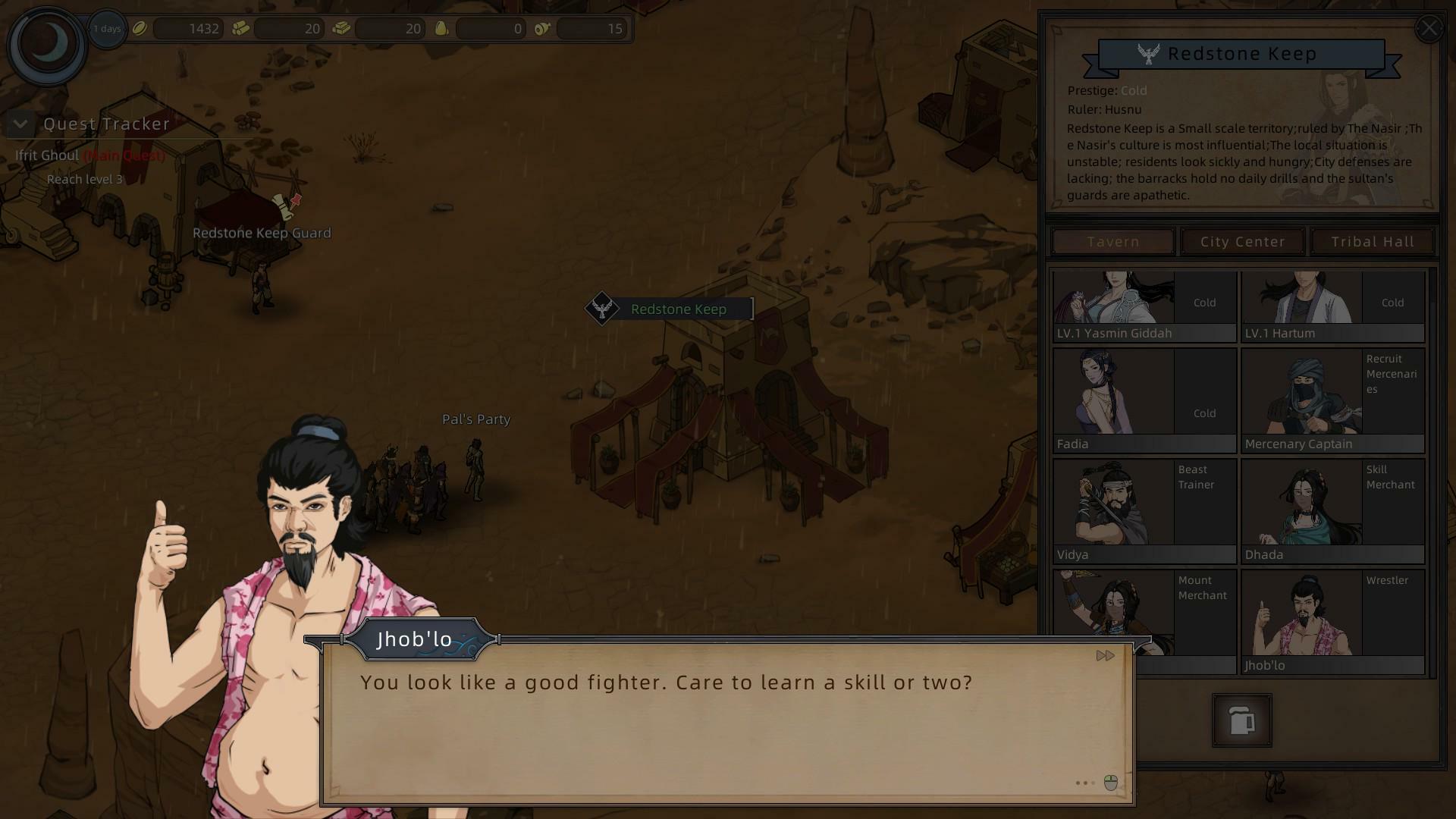 Add five random quests related to travellers' titles and merits. In these quests, NPCs may invite you to join a tribe; or your superiors may assign you to capture specific towns, or ask you to persuade a rival tribe's sultan to surrender; or even incite you to want to overthrow them, etc.