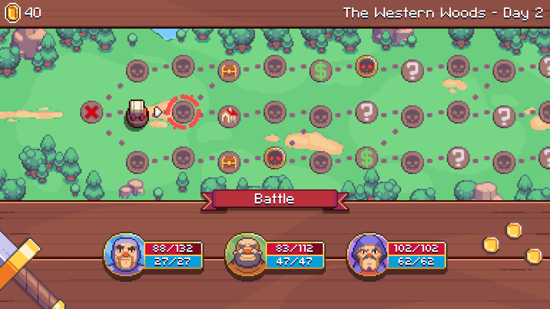 Royal Frontier has a wide variety of items, spells, heroes and monsters to keep each run interesting. The paths and events the player experiences are randomly chosen for each run, so every time you play the game, it should be a new experience. Combinations of different heroes will require the player to try new tactics and finding the right combination of heroes can be critical for survival.