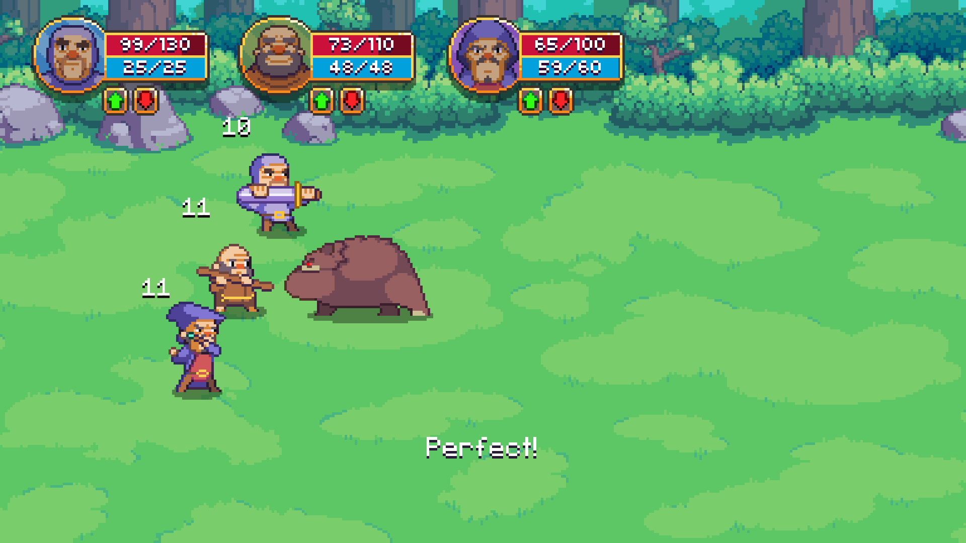Before each run the player will get to choose 3 heroes from a total of 6. After that they will choose 3 out of a selection of 48 blessings. Blessings will give the party various buffs that will increase the chances of survival. The party will face a wide variety of monsters along the way. From lowly goblins to powerful ogres. There is also a boss at the end of each area, as well as optional bosses the players can hunt down, in search of greater challenges and rewards.