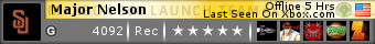 Major Nelson is the Xbox Live GamerTag of Larry Hryb. Larry works at Microsoft. His job? The Xbox Live Director of Programming. He uses his blog to communicate valuable information and news about Xbox Live, and that's why I visit it. It's often the first place I can find information on new Xbox Live Arcade Games, and he's run excellent blog posts on the events of the Tokyo Game Show, E3 and X06.