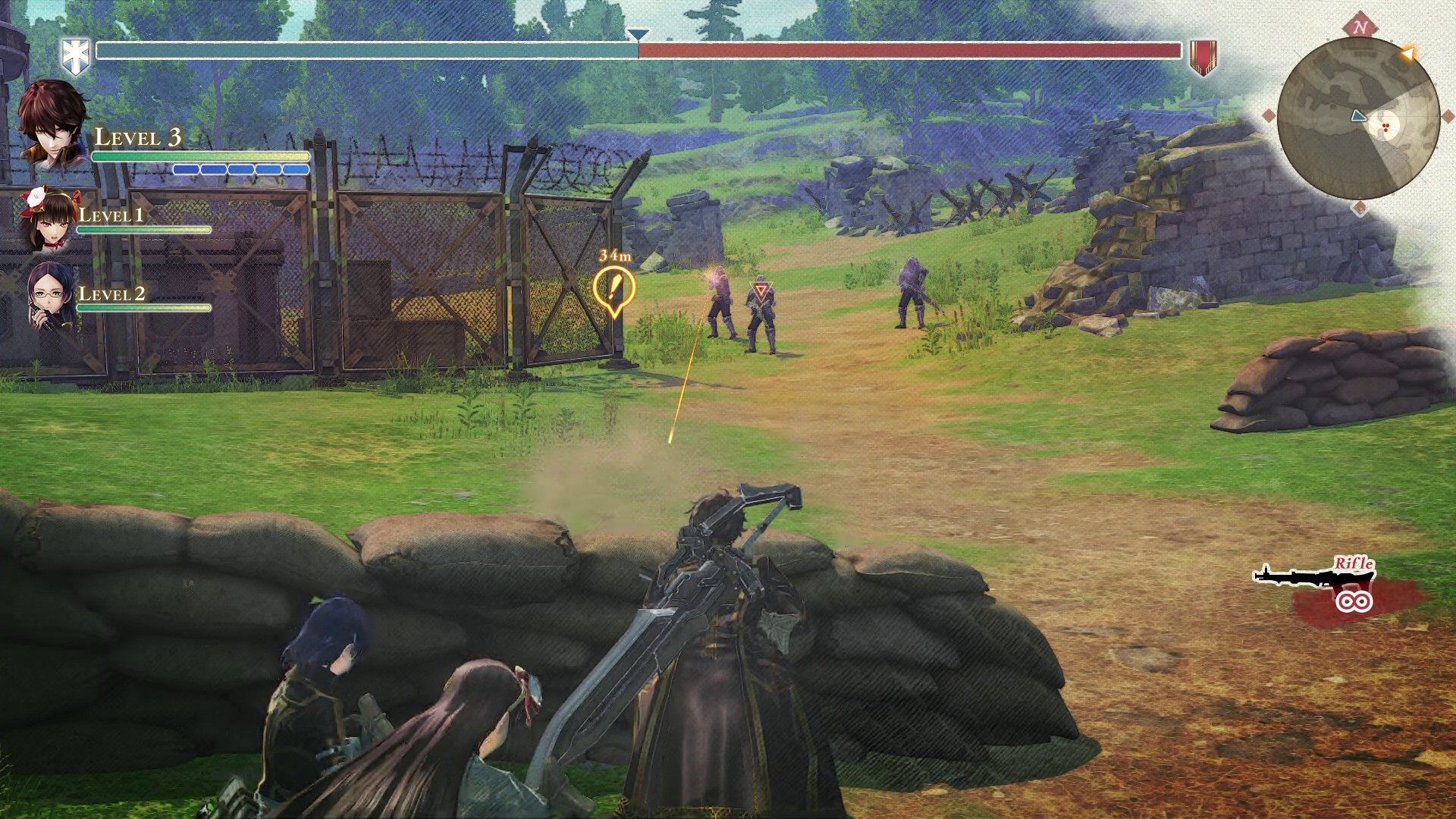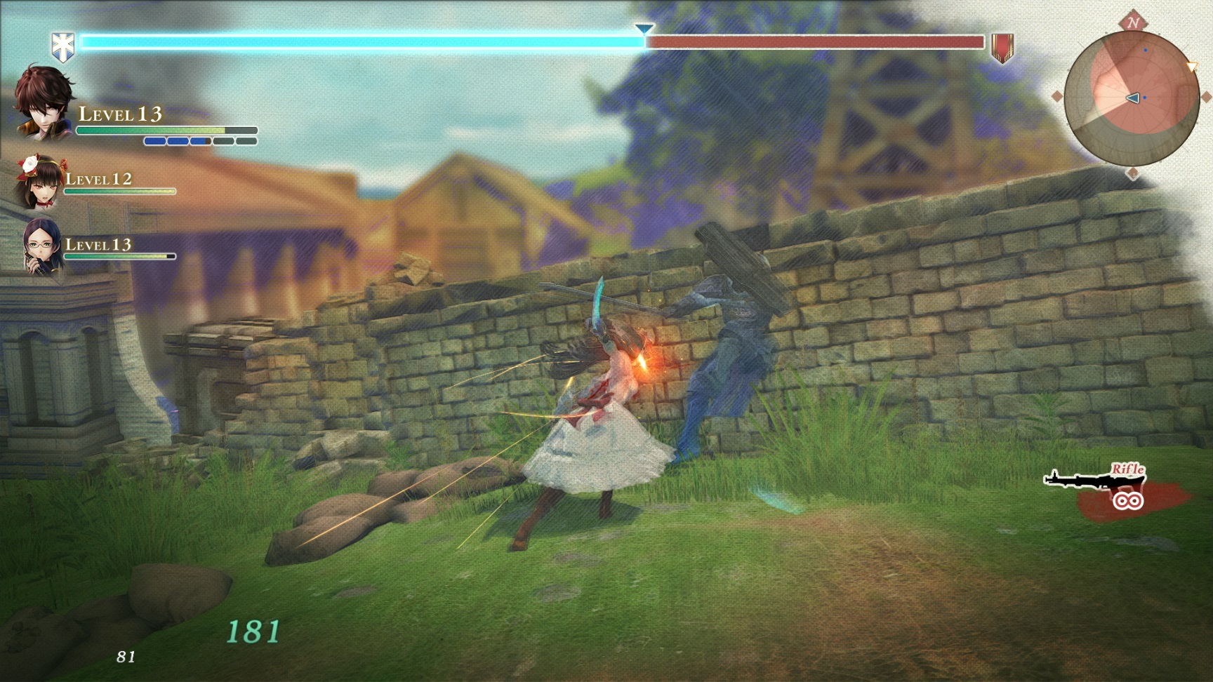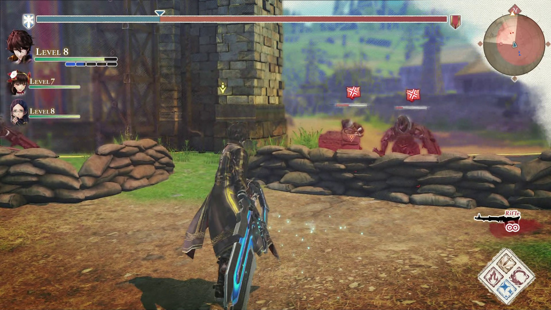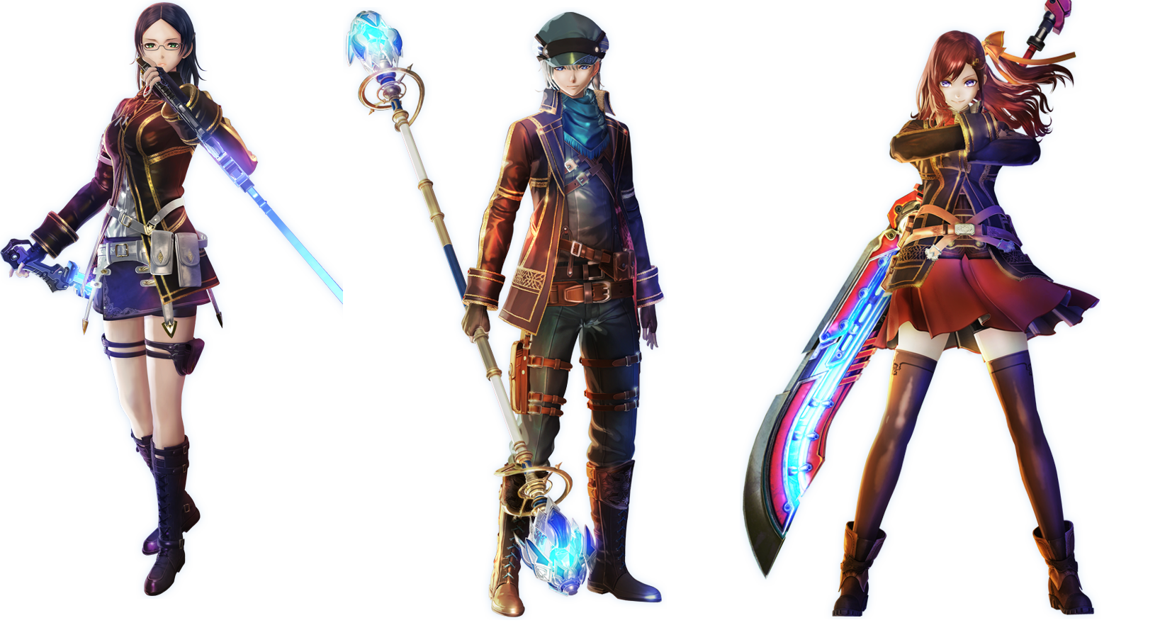In addition, we also are introduced to some new characters. These three are members of the elite Vanargand unit, which use powerful Ragnite arts and weapons. Brigette Ulrich is a sergeant of the squad with a serious demeanor, specializing in riflery. Blum Thomasson and Helena Anderson are friends who joined the Vanargand at the same time. Blum wields a staff while Helena uses a large greatsword.