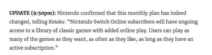 On a later update, they also said this Netflix-like subscription service will only extend to NES games. SNES games are being considered, but they have nothing to announce regarding that at this time.