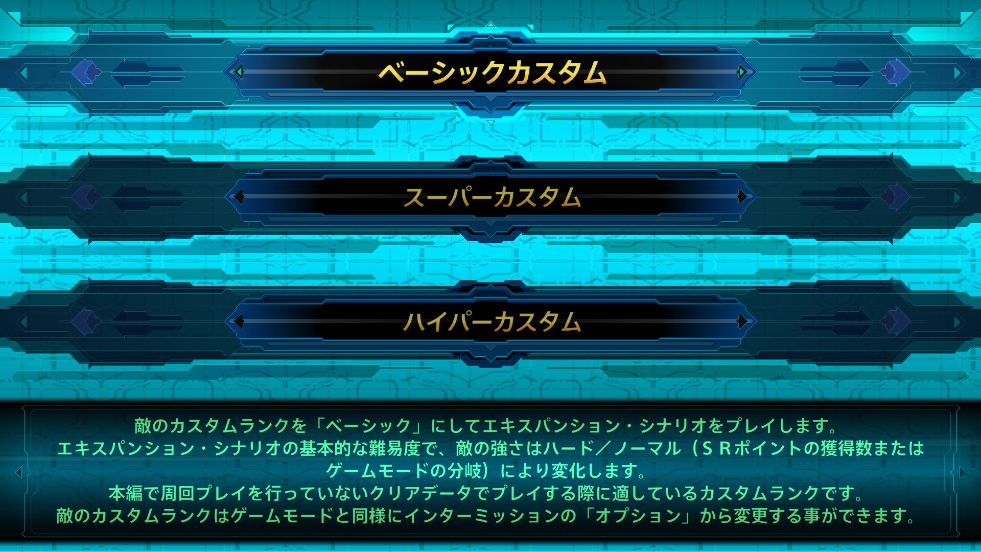 After a new update patch to Version 1.04 is released on June 25, a new Expansion Pack entry will be added to the start menu. The post-game story will have a total of 20 new scenarios, with 14 scenarios in a route which confirms story branching. The Expansion Pack will also have its own difficulty setting called Custom Rank which will determine the upgrade levels of enemies appearing in the post-game story. This can be changed anytime at Options menu inside the Intermission.