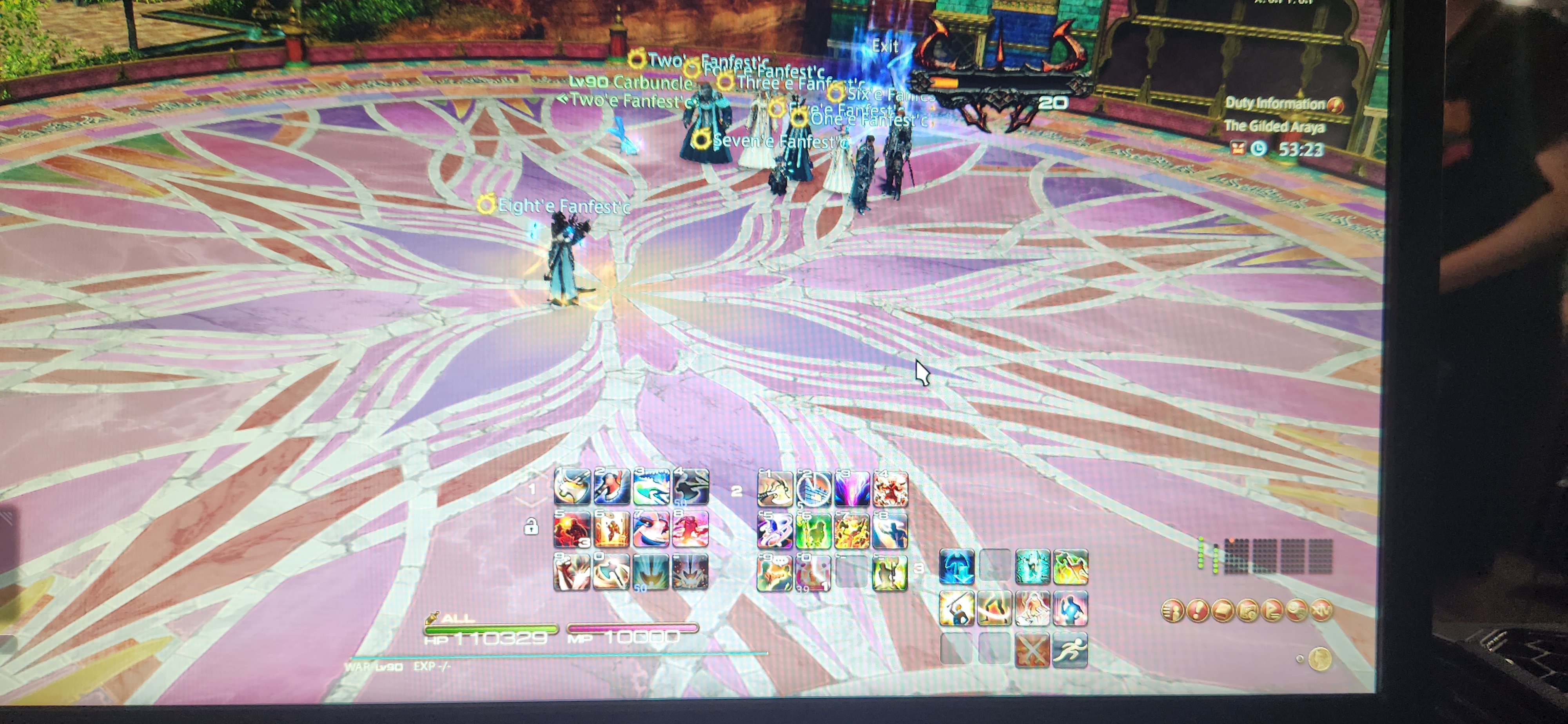 Perhaps more interesting than the fight itself was watching our group scramble to prepare for the encounter - personally, I had smuggled my Logitech G600 mouse on with my person, and the first thing I did was promptly swap out the provided mouse with my own. Every character on the setup had gearsets for every combat Job in the game ready to go, so it was only left to us to arrange our hotbars and keybindings to accommodate how we wished to attempt the fight; all within a reasonably small time limit, of course. Even accounting for the fact that everyone in our group had pre-registered for the challenge ahead of time, there was still plenty of waiting in line before we could be seated at a computer.