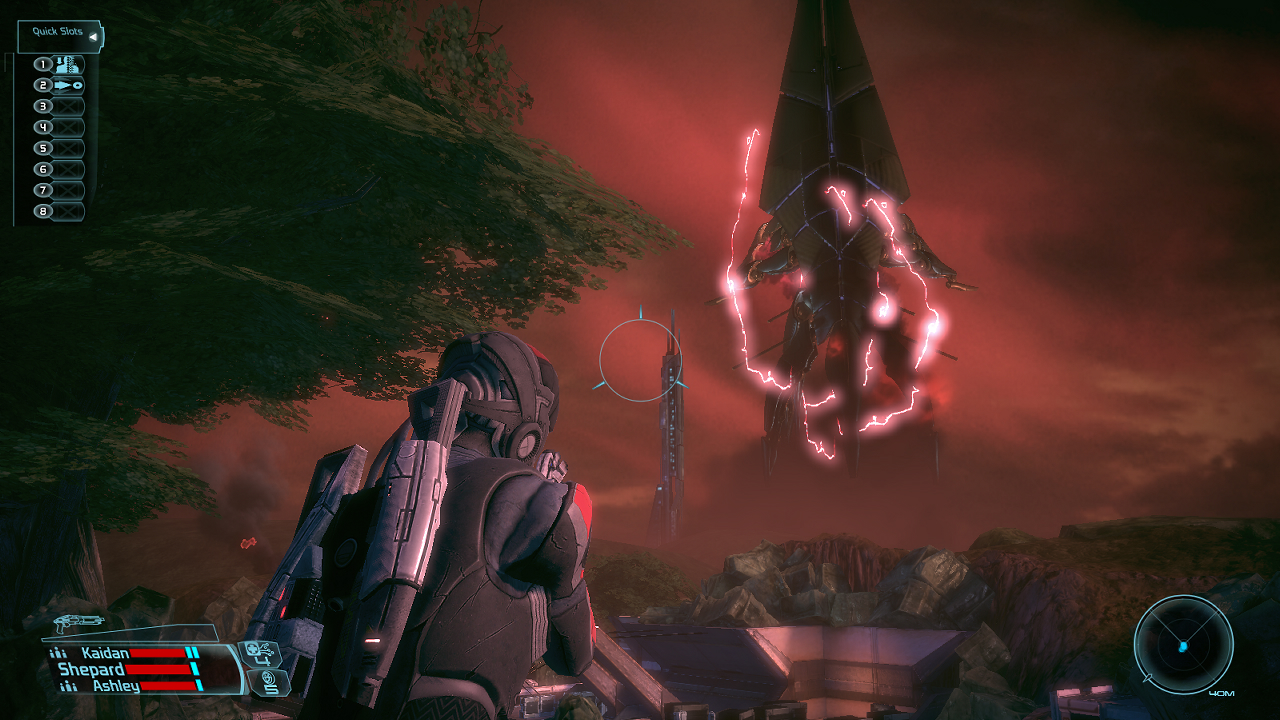 When attacking with gun-based units, the camera zooms in from its RTS-style overview of the warzone to an up-close and personal third person view over your unit’s shoulder. You’re given the option of using an auto-lock on system or aiming on your own for more precise, critical-hit dealing headshots – somewhat like Bethesda’s recent RPG/FPS hybrid Fallout 3. You have to manage this while also ensuring that you remain behind cover, otherwise you could fall under attack from other enemy units while trying to line up your shot. On top of that, cover is frequently destructible, and you’re constantly looking out for the next place to hide as you come under heavy fire.