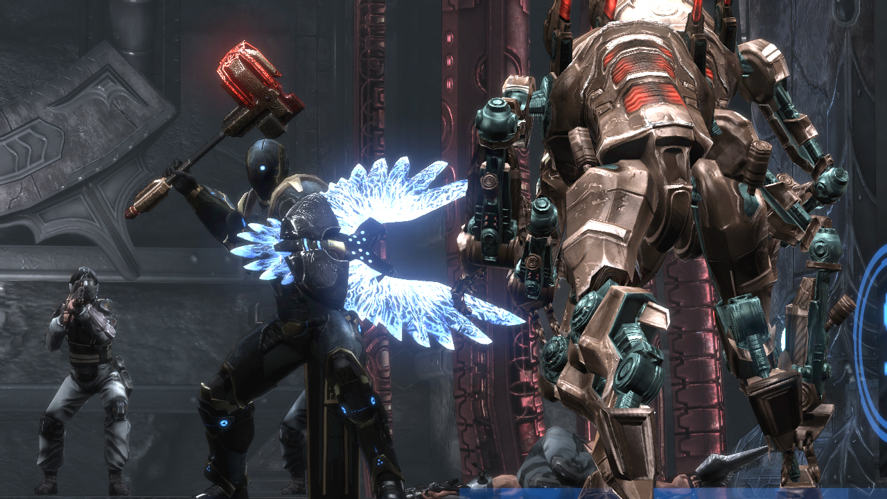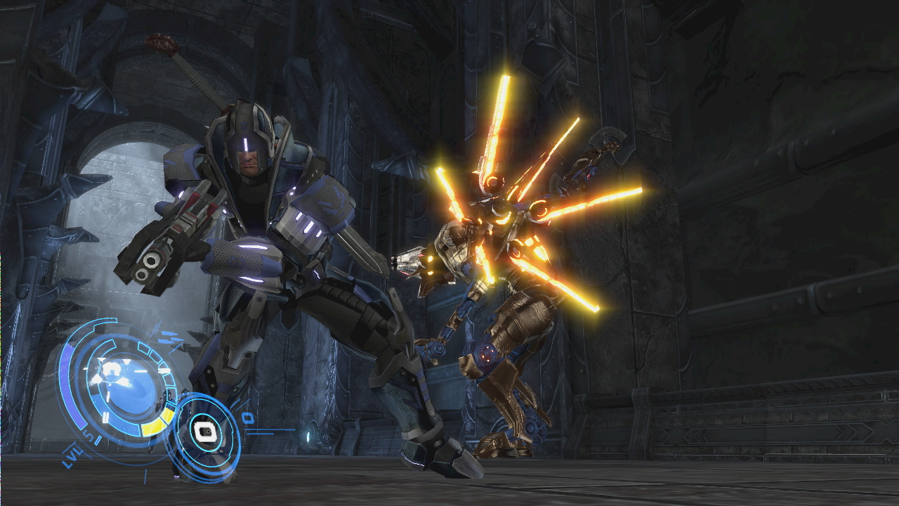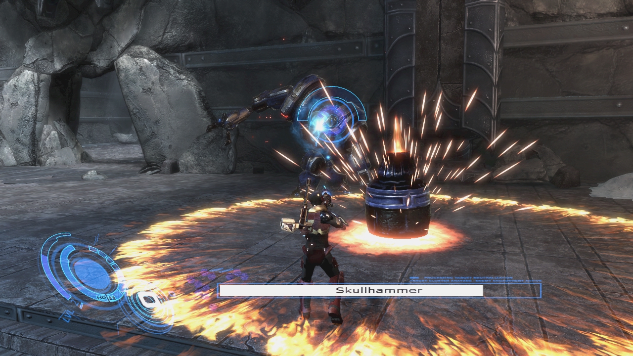 Although the combat system in Ar Tonelico used to be much more of a turn-based affair, Qoga flips the formula on its end and switches to a more high-octane real-time battle system similar to the Tales series. You have your three "vanguards" who are all tasked to protect the defenseless Reyvateils from any bodily harm, who are spending most of the battle singing to accumulate energy that can be used to unleash . Should the enemy get too close inside the "Heroine Field" that surrounds the Reyvateil, their health starts to drop, so players must be quick to expel them outside of the ring, while a cooldown meter controls how quickly a player can do this.